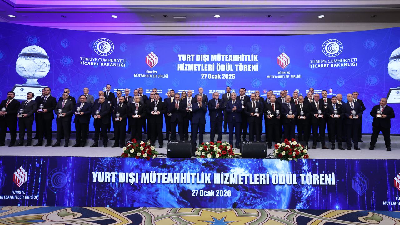 Cumhurbaşkanı Erdoğan, Ankara'daki bir otelde düzenlenen 'Yurt Dışı Müteahhitlik Hizmetleri Başarı Ödülleri Töreni'nde konuştu. Erdoğan, yurt dışı müteahhitlik ve teknik müşavirlik sektörünün, Türkiye'nin uluslararası alandaki en önemli başarı hikayelerinden biri olduğunu söyledi. Türk firmalarının dünyanın dört bir yanındaki projeleriyle Türkiye'nin adını yücelttiğini ifade eden Erdoğan, 'Türk müteahhitleri aynı zamanda güçlü mühendislik birikimimizi, iş yapma kültürümüzü ve güvenilirliğimizi de dünyanın farklı ülkelerine taşıyor. Türk inşaat şirketleri son yıllarda yurt dışında gerçekleştirdiği projelerle dünyanın en prestijli firmaları arasında yer almayı başarmışlardır. Firmalarımızın iş disiplini, örnek iş ahlakı ve kalite anlayışı şirketlerimizi küresel ölçekte aranan iş ortakları haline getirmiştir. Türk inşaat sektörünün 1972 yılında başlayan yurt dışı faaliyetleri aradan geçen 54 yılda başarıdan başarıya koşarak, bugün hepimizi gururlandıran bir seviyeye ulaşmıştır. Şimdiye kadar yüzde 90'ı bizim iktidarlarımız döneminde olmak üzere dünyanın 138 ülkesinde, 12 bin 816 proje kapsamında, 557 milyar dolardan fazla iş almış durumdayız. Yakaladığımız bu ivmeyi küresel ekonomideki olumsuzluklara rağmen kararlı bir şekilde sürdürüyoruz' dedi.