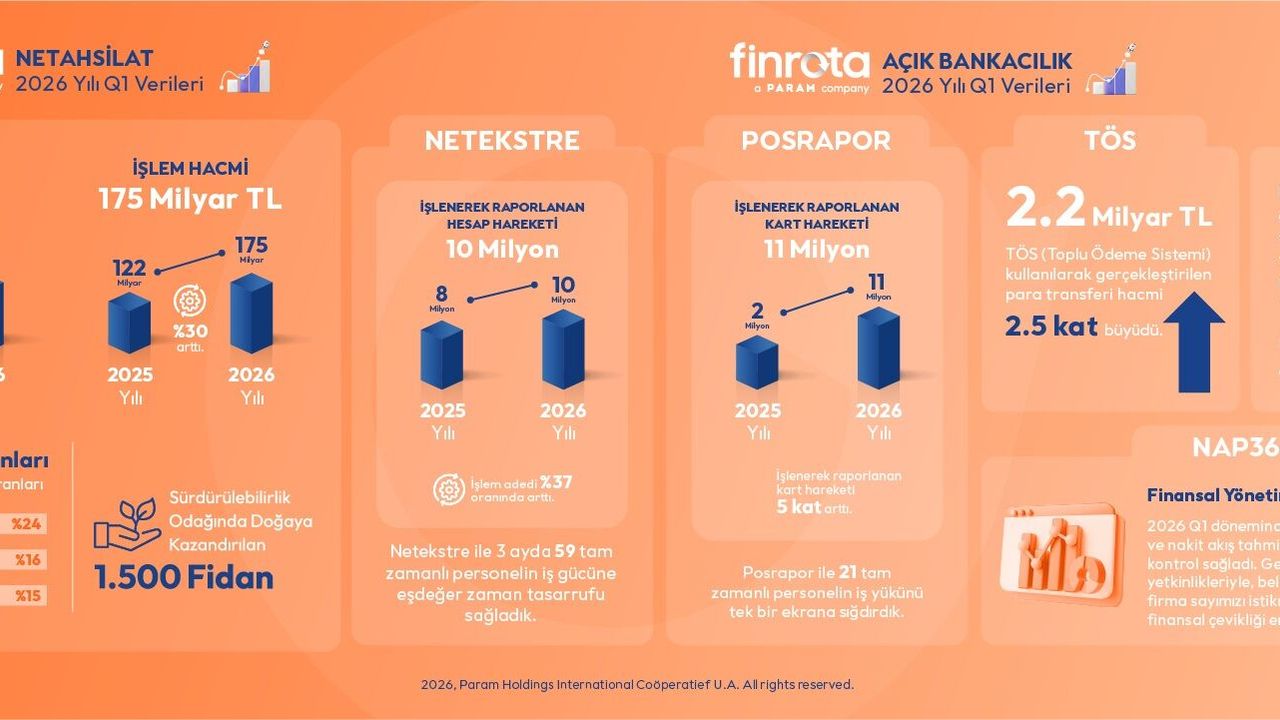 2026 yılının ilk çeyreğinde Netahsilat aracılığıyla gerçekleştirilen işlem adedi, bir önceki yılın aynı dönemine göre yüzde 11 oranında artarak 3 milyona ulaştı. Bu işlemler sonucunda çeyrek boyunca toplam 175 milyar TL tahsilat gerçekleştirildi.
