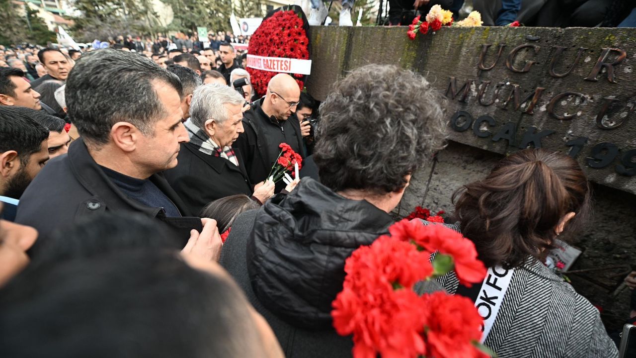 Çankaya ilçesi Uğur Mumcu Sokağı'nda düzenlenen anma törenine; CHP Genel Başkanı Özgür Özel, Ankara Büyükşehir Belediye Başkanı Mansur Yavaş, Mumcu'nun ailesi ve yakınları ile çok sayıda vatandaş katıldı. Özel, tören öncesi Uğur Mumcu'nun evini ziyaret ederek, eşi Güldal, kızı Özge ve oğlu Özgür Mumcu ile görüştü. Özel ve beraberindeki heyet, Mumcu'nun evinin önündeki Faili Meçhuller Anıtı'na ve Uğur Mumcu'nun hayatını kaybettiği alana karanfil bıraktı. Özel, 33 yıllık bitmeyen bir acının yıl dönümü olduğunu belirterek, 'Uğur Mumcu'nun katledildiği yerde, katledildiği sokakta onun hatırası önünde bir kez daha eğilerek ve yüreğimizde hiç sönmeyen o bir mumun acısını hissederek, kendisini bir kez daha andık. Bugün aynı zamanda Gaffar Okkan'ın, İsmail Cem'in ölüm yıl dönümüdür. Her üçüne de Allah'tan rahmet diliyorum' dedi.