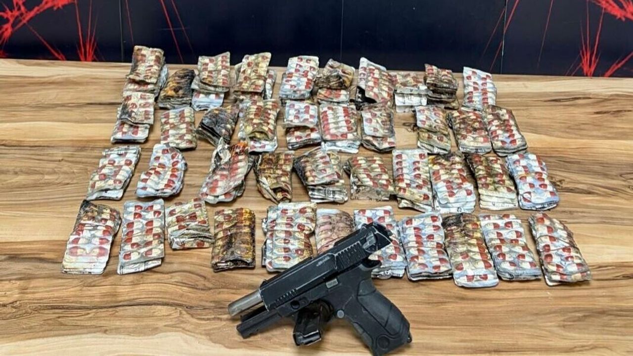 Karabağlar İlçe Emniyet Müdürlüğü'ne bağlı ekipler dün, Limontepe Mahallesi'nde silahla ev basıldığı ihbarı üzerine bölgeye gitti. Evde yangın çıktığını gören ekipler, olay yerinden dışarı çıkan 7 şüphelinin bölgeden ayrılmasına izin vermedi. İtfaiye ekiplerinin yangına müdahalesinin ardından evde ve bitişiğindeki diğer evde arama yapan polis, 1 ruhsatsız tabanca, 2 bin 926 uyuşturucu ecza, 3 fişek ve 1 kovan ele geçirdi.